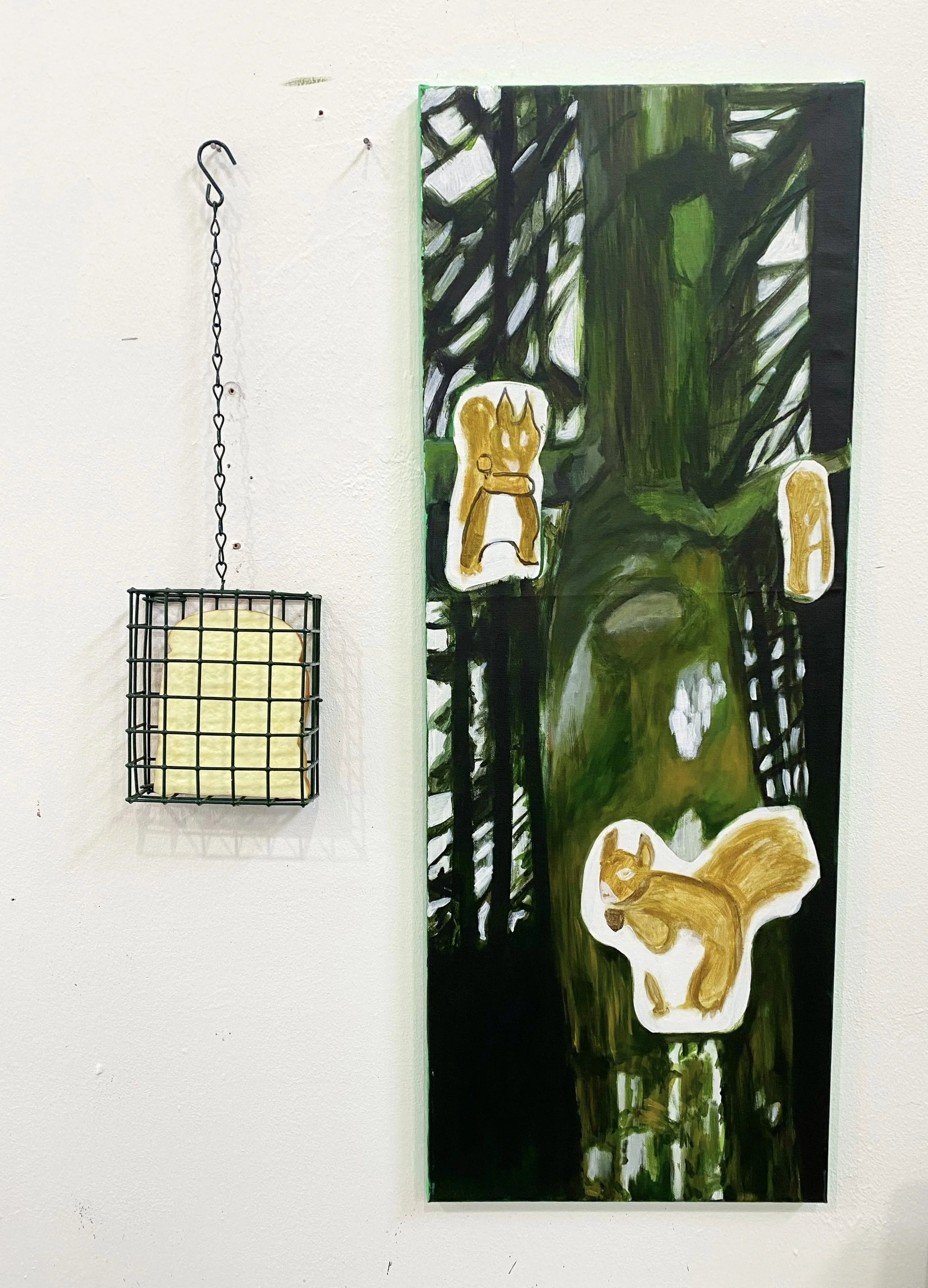 Squirrels, 2022, Acrylic on Canvas, Caged bread No. F for Fish, 2022, Acrylic on Canvas Du kie, 2022, Acrylic on Canvas